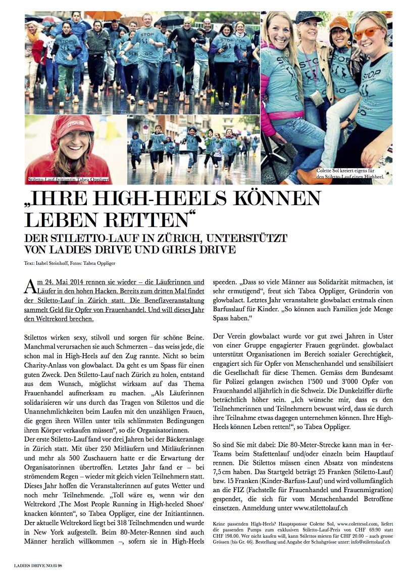 Colette Sol Foundation is voor de tweede keer hoofdsponsor van de stiletto run in Zurich, georganiseerd door glowbalAct in hun strijd tegen vrouwenhandel.Colette Sol Foundation supports victims of human trafficking