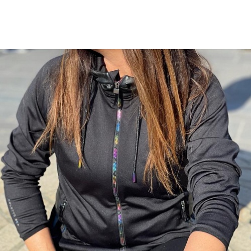 Glamour@home! Sportief vest met luxe ritsen in alle kleuren van de regenboog. Lekker voor zowel binnen als buiten, en tegelijk niet te casual tijdens een zoomsessie. Online bestellen is sinds 1 juli 2025 niet meer mogelijk. Stuur een mailtje naar klantenservice@colettesol.com als je interesse hebt in dit product.