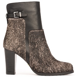 Halfhoge-laarzen Comfortabele zwart leren laars bedekt met grijs/bruin kalfshaar. Hakhoogte is 8 cm en we hebben een heerlijk zacht binnenzooltje toegevoegd. De rits zit aan de binnenzijde. De binnenkant is uiteraard ook van leer. Dit laarsje staat prachtig onder een broek. Een echte eyecatcher.