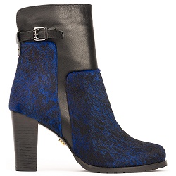 Halfhoge-laarzen Prachtig zwart leren laarsje bedekt met zwart/blauw kalfshaar. Hakhoogte is 8 cm en we hebben een zacht binnenzooltje toegevoegd voor extra comfort. De rits zit aan de binnenzijde. De binnenkant is uiteraard ook van leer. Een echte eyecatcher.