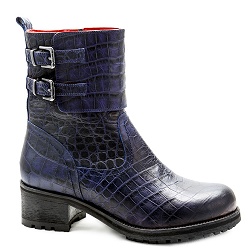Halfhoge-laarzen De runner up van de Shoe of Holland competitie 2016! Stoere biker boot van prachtig blauw leer met crocoprint. Ze zitten zeer comfortabel en het zijn designer Colette’s persoonlijke favorieten. We hebben dit model in verschillende kleuren en leersoorten, maar deze blauwe zijn echt fantastisch!