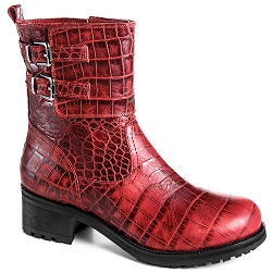 Halfhoge-laarzen Stoere biker boot van prachtig rood leer met crocoprint. Ze zitten zeer comfortabel en het zijn designer Colette’s persoonlijke favorieten. We hebben dit model in verschillende kleuren en leersoorten, maar deze rode zijn echt fantastisch!