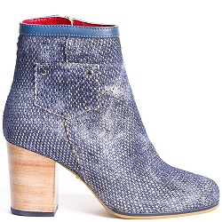 Halfhoge-laarzen Korte laars met fantastische blauw/zwarte print. Gemaakt op onze klassieke leest, dus de pasvorm is geweldig. Rits aan de binnenkant. Binnenzijde is ook van leer.