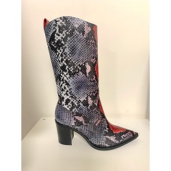 Hoge-laarzen ZEER beperkte oplage! Van collectie SS2020 hebben we enkele losse paren op voorraad. Deze cowboylaars is gemaakt van leer met grijs/rode snake print.