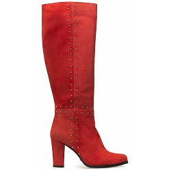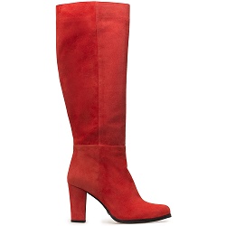 Hoge-laarzen Lange suede laars in een warmrode tint. Binnenzijde van de laars is van leer. Elastiek aan de bovenkant van de kuit. De hakhoogte is 8 cm.