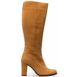 Hoge-laarzen Lange suede laars in een krachtige aardetint. Binnenzijde van de laars is van leer. De hakhoogte is 8 cm. Elastiek aan de bovenkant van de kuit.