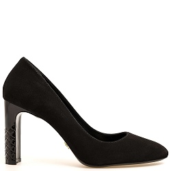 Pumps Zwart suede pump met zwarte fantasiehak. Vallen klein, kies een maat groter dan gebruikelijk.