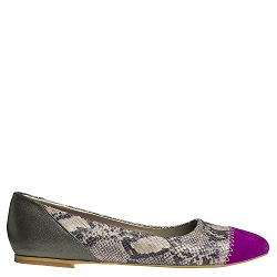 Pumps Elegante ballerina van drie materialen: modieus cyclaam suede, leer met snakeprint en brons leer. Kleurrijk, origineel en comfortabel ineen.