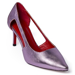 Pumps Fraaie pump van roze metallic leer. De hakhoogte is zowel elegant als comfortabel. Pump valt smal. Kies een maat groter dan gebruikelijk.