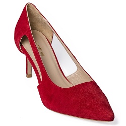 Pumps Fraaie pump van rood suede. De hakhoogte is zowel elegant als comfortabel. Pump valt smal. Kies een maat groter dan gebruikelijk.