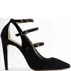 Pumps Pump met power! Deze prachtige zwart sučde pump met 3 bandjes geven glamour aan aan je feestoutfit. De hakhoogte is 10 cm en daarom zeer geschikt voor de geoefende pumpdraagster. De binnenzijde is ook van leer natuurlijk. Voor een echte entree draag je deze prachtige pumps.