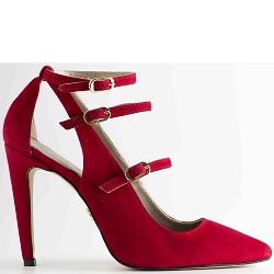 Pumps Pump met power! Deze felrode sučde pump met 3 bandjes geven kracht aan aan je feestoutfit. De hakhoogte is 10 cm en daarom zeer geschikt voor de geoefende pumpdraagster. De binnenzijde is ook van leer natuurlijk. Voor een echte entree draag je deze prachtige pumps.