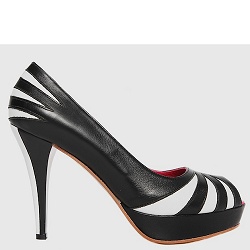 Pumps Feestelijke pump van zwart en wit leer met bicolor hak. Hakhoogte 9 cm, hoogte platform 2 cm. Binnenzijde is ook van leer. Steel de show met deze showstoppers.