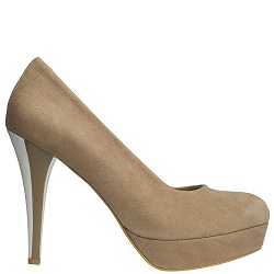 Pumps Fraaie pump van taupe suede met cream degradé hak. Hakhoogte 9 cm, hoogte platform 2 cm. Binnenzijde is ook van leer. Ze zitten fantastisch. Perfect om jouw zakelijke outfit een persoonlijke tintje te geven, maar ze doen het op een feestje ook geweldig.