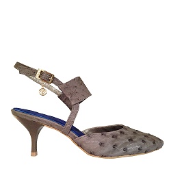Pumps Elegant slingback pumpje in van taupe struisvogelleer met een comfortabele hakhoogte en vertrouwd comfort. Queeny hakje in taupe en creme degradé. 100% leer. Neutraal van kleur, maar door de karakteristieke dotjes in het leer is het een hele bijzondere pump.