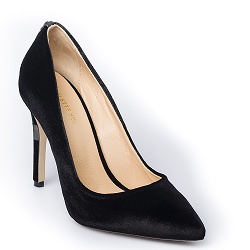 Pumps Prachtige pump van zwart fluweel. Binnenzijde van leer en uiteraard voorzien van ons comfortabele binnenzooltje. Op de hiel en hak subtiele accentjes van brons leer. Hakhoogte 8 cm.