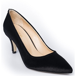 Pumps Vrolijk zomerpumpje in diep zwart sučde. De gekruiste banden op de wreef maken dit pumpje comfortabel.