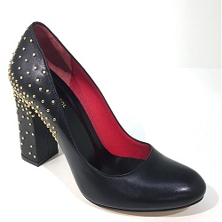Pumps Glamorous pump van zwart leer met gouden studjes in waterval motief. Kloeke hak, die ondanks de hoogte van 10 cm comfortabel aanvoelt. 100% leer.