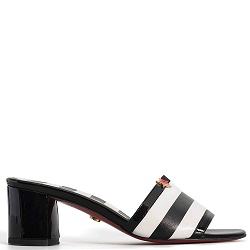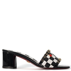 Slippers Instant glamour met dit zwart-witte leren instapschoentje. Comfortabele blokhak en voorzien van 1 rode ster.