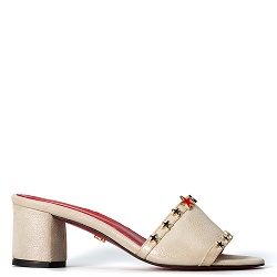 Slippers Instant glamour met dit zachtgoud leren instapschoentje. Comfortabele blokhak en sterren overal!