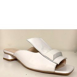 Slippers ZEER beperkte oplage! Slechts 1 paar op voorraad! Van collectie SS2020 hebben we enkele losse paren op voorraad. Chic instap sandaaltje van lakleer in fris wit. Kies een maat kleiner dan gebruikelijk, het slippertje valt groot.