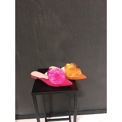 Slippers ZEER beperkte oplage! Slechts 5 paar op voorraad! Van collectie SS2020 hebben we enkele losse paren op voorraad. Geinig slippertje met een grote pompon op de neus.