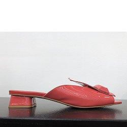 Slippers ZEER beperkte oplage! Van collectie SS2020 hebben we enkele losse paren op voorraad. Chic instap sandaaltje van lakleer in modieuze kleur koraalrood. Kies een maat kleiner dan gebruikelijk, het slippertje valt groot.
