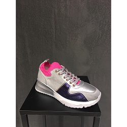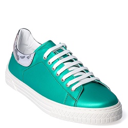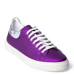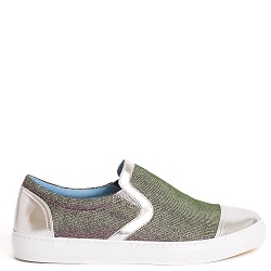Sneakers Een heerlijke instapper om zo de deur mee uit te vliegen. Gemaakt van een schitterende stof bestaan de uit drie kleuren: zilver, groen en paars. De details zijn van zilverkleurig leer en de binnenkant is ook van leer.