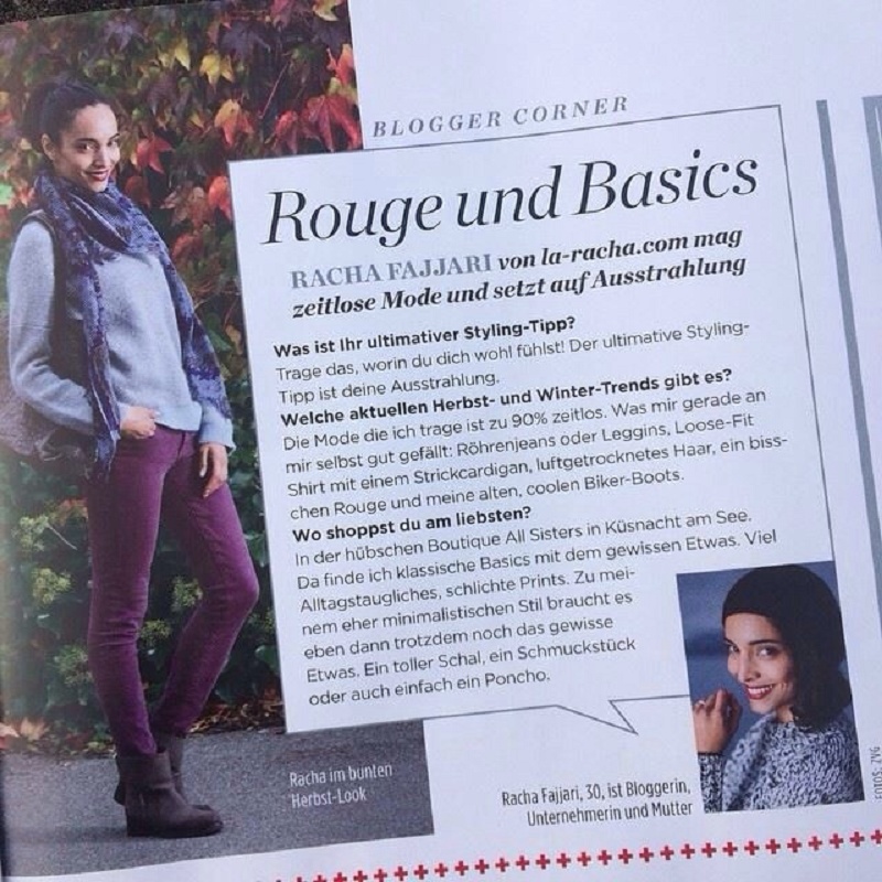 Zwitserse Blogster Racha Fajjari draagt onze Velcro Booties uit de wintercollectie van 2014/2015. Gala Magazine november 2014.
