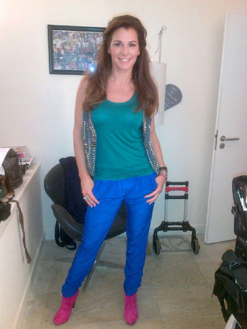 Presentatrice Quinty Trustfull draagt de ankle boots glamour fuchsia tijdens ’Koffietijd’.