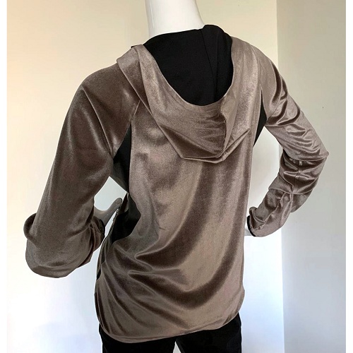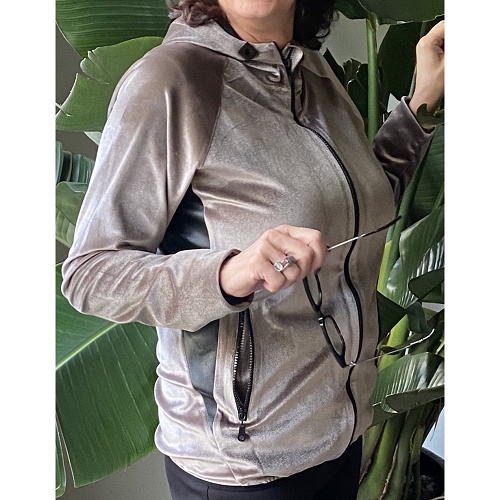Glamour@home! Velours vest met capuchon in een prachtige taupe met zwarte details o.a. van fluweel. Beleef comfort, luxe en elegantie, zowel aan de binnen- als aan de buitenkant. Heerlijk om in weg te kruipen, maar ook netjes tijdens een zoomsessie. Online bestellen is sinds 1 juli 2025 niet meer mogelijk. Stuur een mailtje naar klantenservice@colettesol.com als je interesse hebt in dit product.