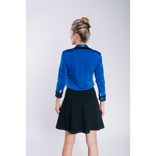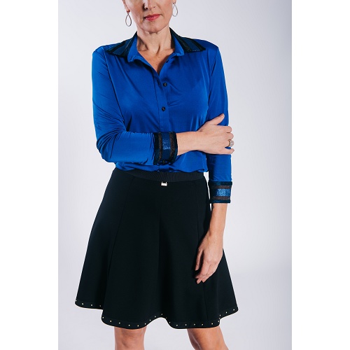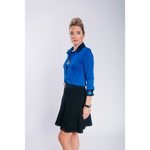Deze blouse is gemaakt van soepele stof van travel kwaliteit met een prachtıge glans. Wat de blouse heel bijzonder maakt is de afwerkıng van de kraag en manchetten met een bijzonder transparant materiaal met glanzende en fluwelen banden. De speciale knoopjes geven de blouse een luxe moderne uıtstraling. De blouse heeft een getailleerde fit wat resulteert in een zeer elegante look. Goed wasbaar en kreukt niet. Mooi te combineren met een zwarte broek of rok of voor een meer casual look enig met jeans. Online bestellen is sinds 1 juli 2025 niet meer mogelijk. Stuur een mailtje naar klantenservice@colettesol.com als je interesse hebt in dit product.