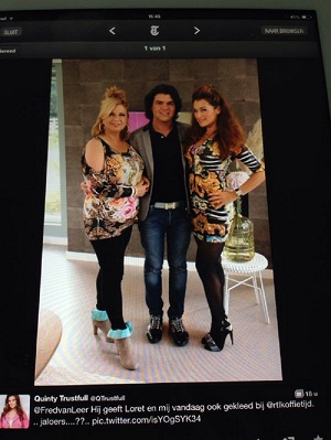Koffietijd; Loretta en Quinty met Roy ’’stylist van het zuiden’’
